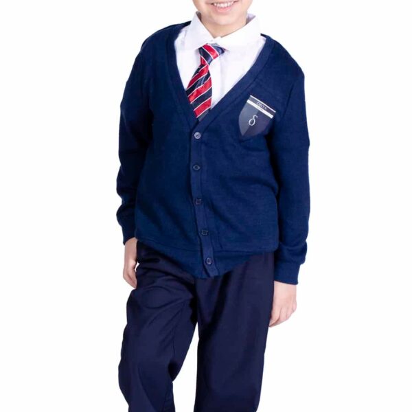 طقم كامل للأولاد خاص بمدارس دلتا العالمية (كي جي ) عبارة عن قميص أبيض وكرفتة وبنطلون كحلي وسويتر كحلي